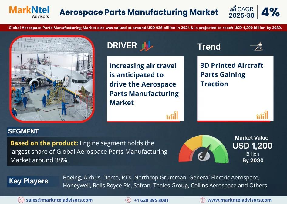 MarkNtel Advisors recently published a detailed industry analysis of the Global Aerospace Parts Manufacturing Market. The report covers growth trends, geographical marketing strategies, challenges, opportunities, and drivers influencing the market.