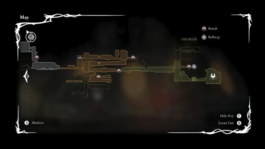 Um zur finalen Begegnung mit der Witwe zu gelangen, kehre in die letzte Kammer zurück, bewege dich nach Osten und falle durch einige Löcher nach unten. Weiter östlich findest du den Weg zum Kampf. Nach dem Sieg über die Witwe wird die Nadolin-Fähigkeit aktiviert, wodurch du die verschlossenen Weber-Türen öffnen kannst, die zuvor den Weg versperrten, und neue Areale im Spiel freischaltest.