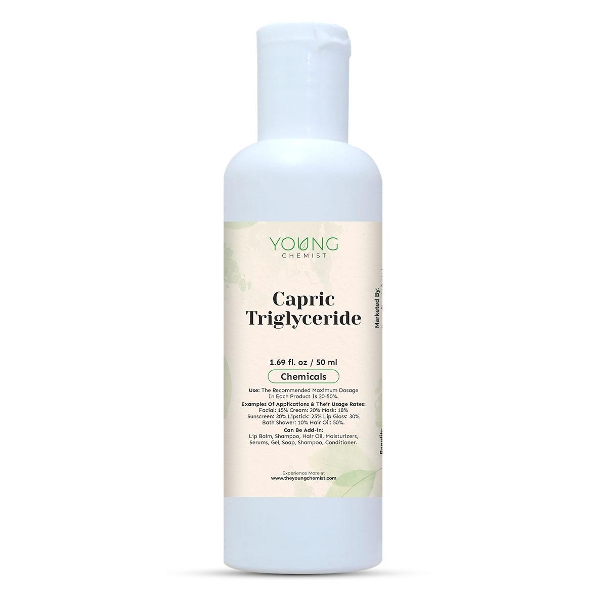 Young Chemist Capric Tri-Glyceride is a cosmetic chemical commonly used in skincare and personal care products. It is derived from coconut oil and consists of a mixture of capric acid and glycerin. This ingredient offers several benefits for the skin and is known for its emollient, moisturizing, and conditioning properties