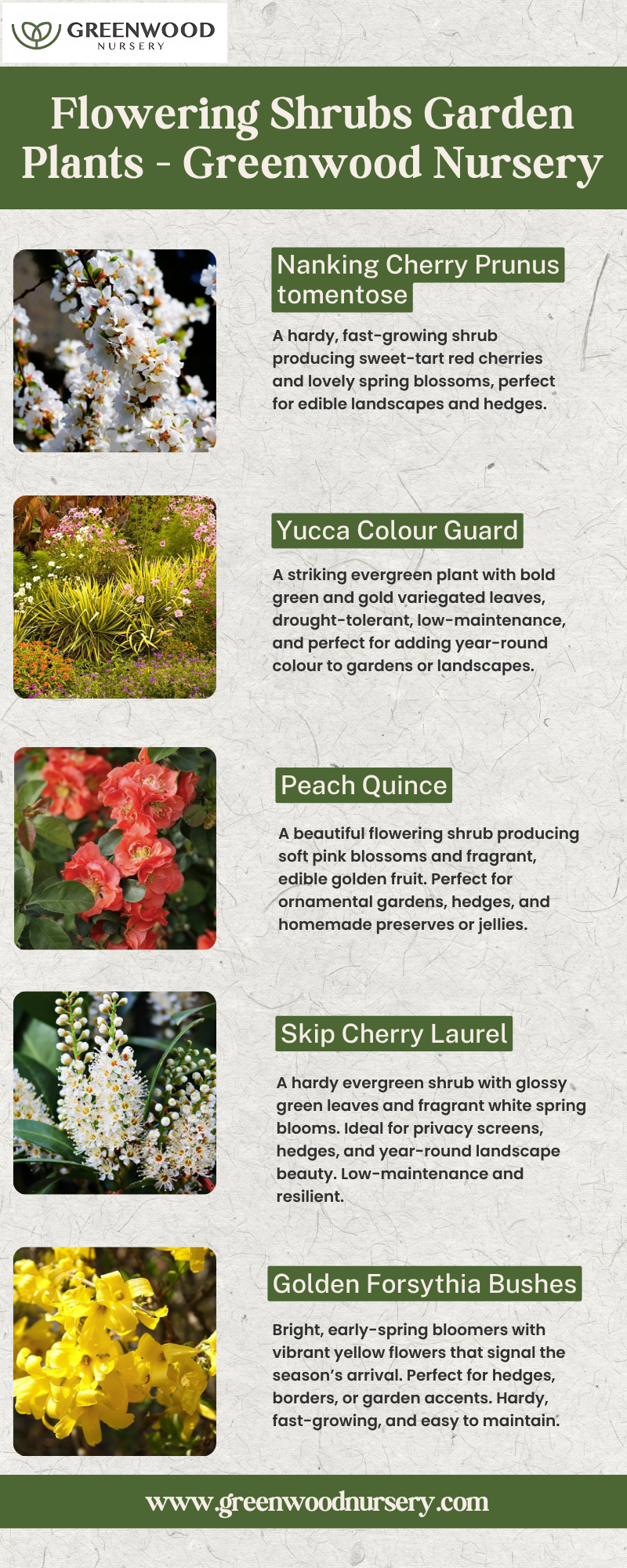 For your garden, select a range of Flowering Shrubs Garden Plants that have been bred to thrive and produce beautiful flowers. These colorful and robust plants make excellent hedges, borders, or standalone garden accents. Designing a bright and colorful garden has never been simpler, thanks to the convenience of online ordering and delivery. Improve the aesthetics of your landscape today. For more Information, visit us: https://www.greenwoodnursery.com/collections/all-shrubs-for-sale
